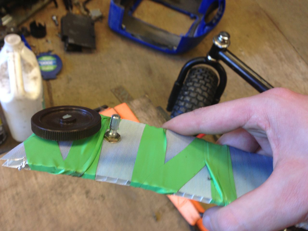 This is the donor electric mobility scooter frame that we’ll be using for the project. 24V, two electric motors – and it seems to draw about 60A on each if you tie it to the truck and do burnouts with someone standing on it.